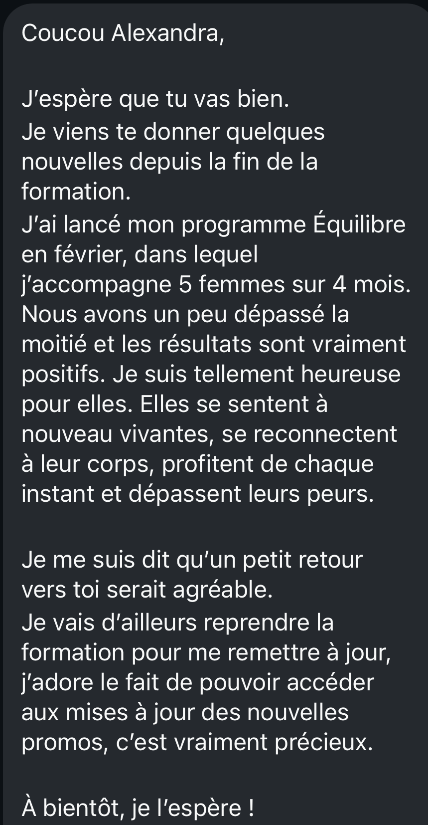 J’ai retrouvé une vitalité que je n’avais plus depuis des années. Mon business a décollé. Et surtout, j’ai senti pour la première fois que j’étais pleinement alignée.